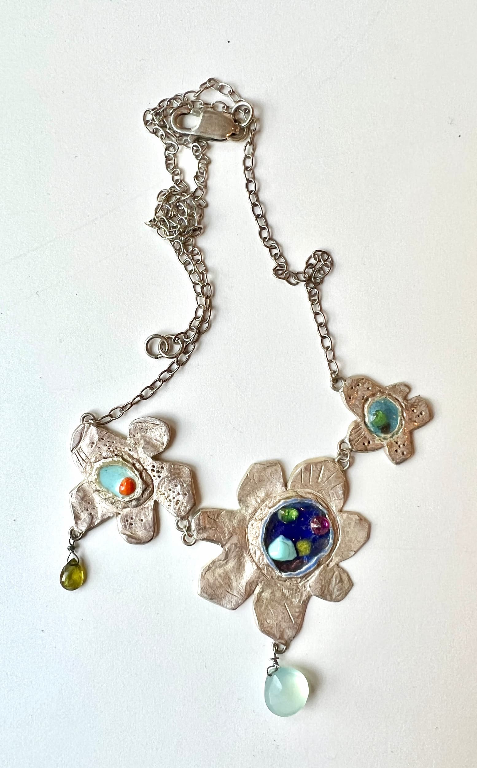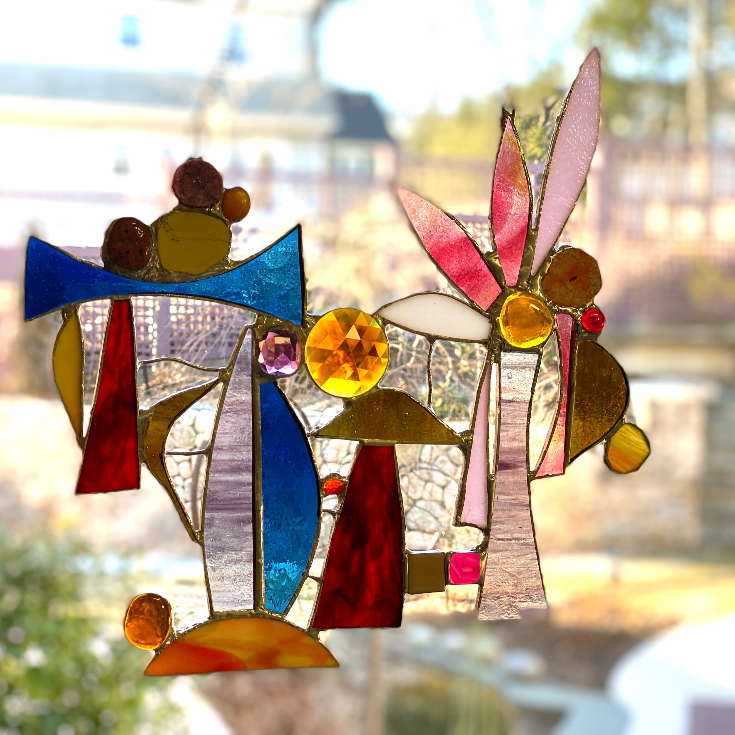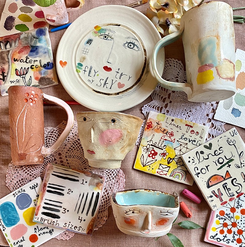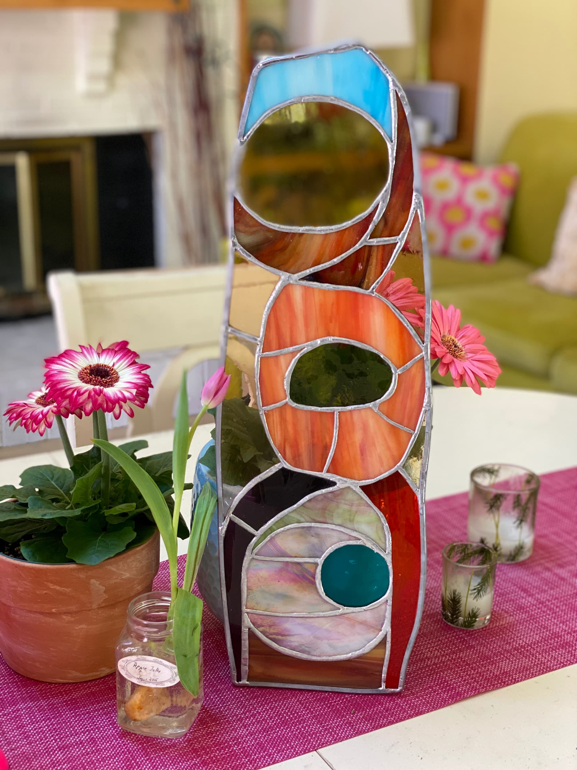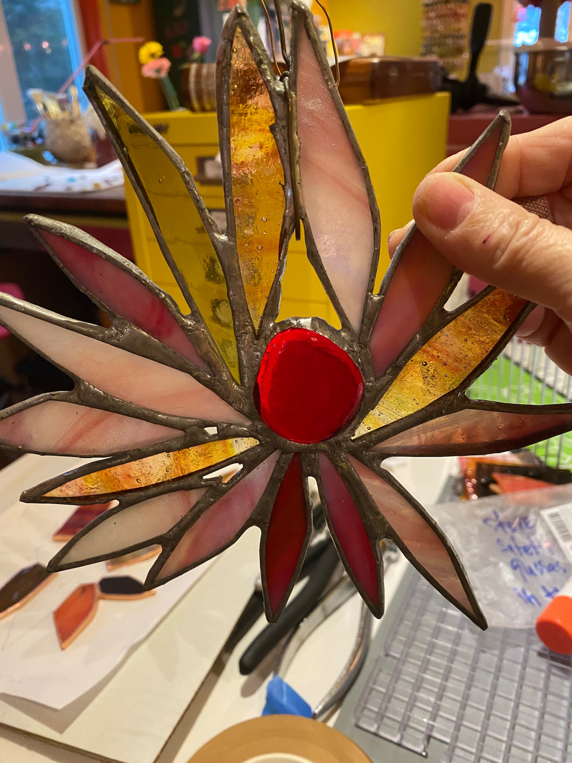 I like to do jewelry, stained glass, ceramic, quilting, crochet, machine and hand embroidery, and I'm sure I'm forgetting something. There's not a craft I've met that I don't love. I even have a little pink kiln in my studio! Here's a little sample of my things. I hope you enjoy the show!